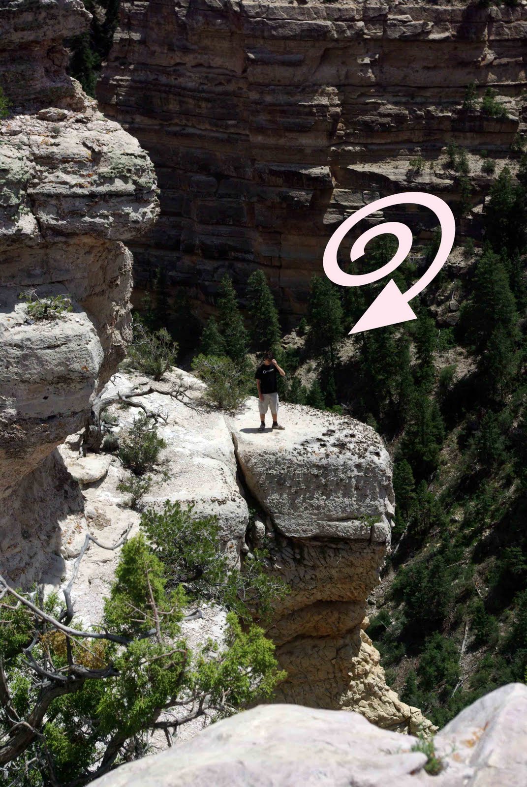 Yeah, that's Thing Two, hiking out on the rock. Some German tourists standing next to us were quite alarmed. "Vee arr hoppy our boy is sleeeeping in the recreeeationul veeehicle. We would heete for heem to get any ideeeas from that naughty boy oot der."